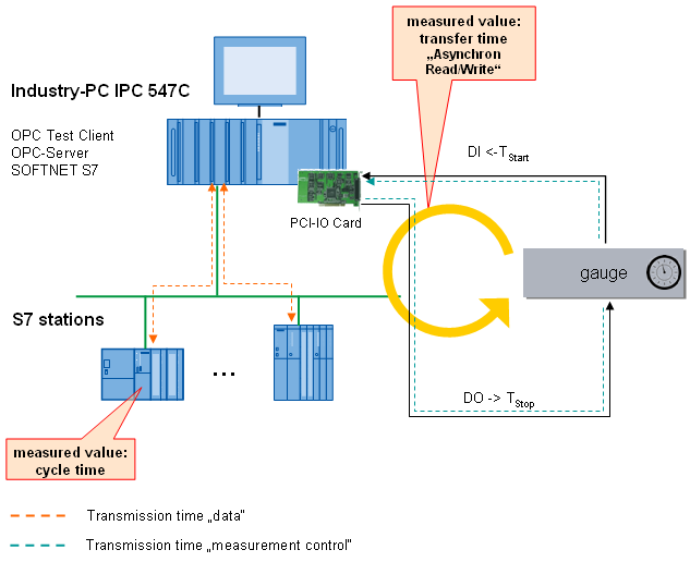 The measuring setup for the OPC modes "asynchronous writing" and "asynchronous reading" are principally the same.